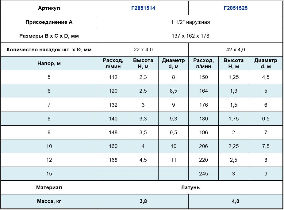 Высота струи max, м