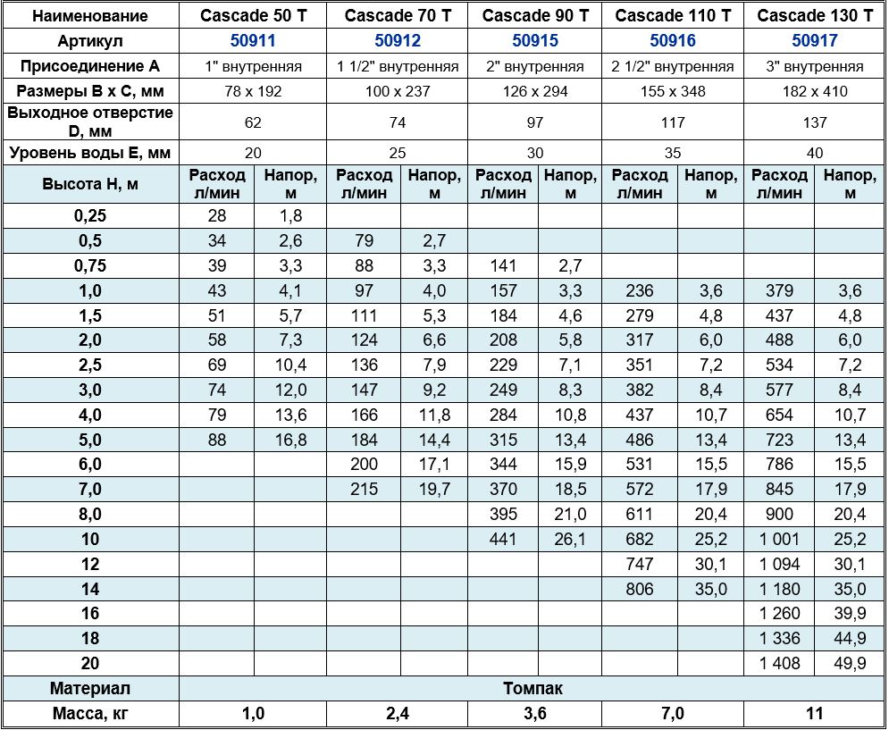 Фонтанная насадка Cascade 130 T